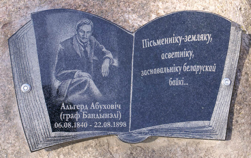 Доска на памятном знаке в Калатичах, посвященном Альгерду Абуховичу. Сентябрь 2010 г.