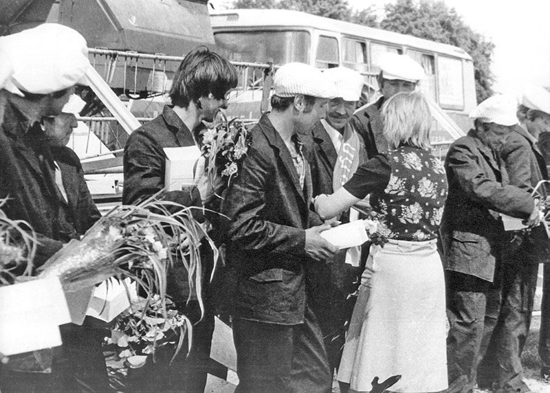 Доколь. Цветы и подарки комбайнёрам колхоза «Гвардия» в честь начала жатвы. 1978 г.